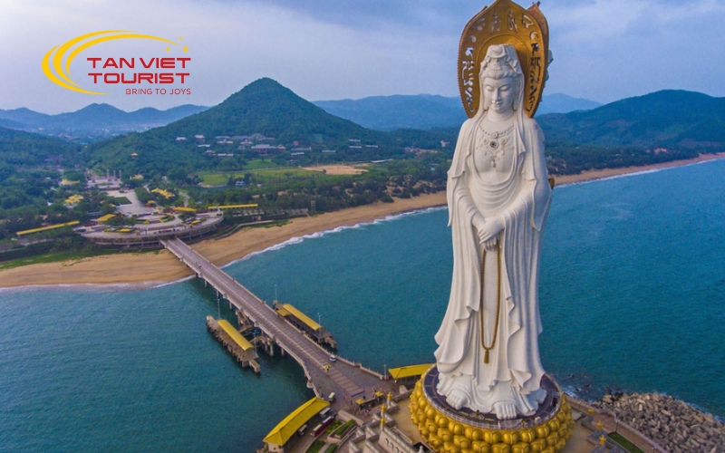 - Trung tâm Văn Hóa Phật Giáo Nam Sơn khu vực này có tổng diện tích lên đến 50km2 với các công trình Phật giáo đồ sộ, nổi bật nhất là chùa Nam Sơn – một trung tâm Phật giáo quan trọng trên đảo. Đến đây quý khách có cơ hội chiêm bái tượng Phật Bà Quan Âm Thượng Hải Nam Sơn đứng trên tòa sen cao 108m trên biển với ba mặt nhìn ra ba hướng tượng trưng cho Từ bi, Bình an và Trí tuệ. Cũng theo điển tích Trung Hoa nếu đến lễ Phật ở Nam Sơn sẽ mang được phúc đức, may mắn về nhà.