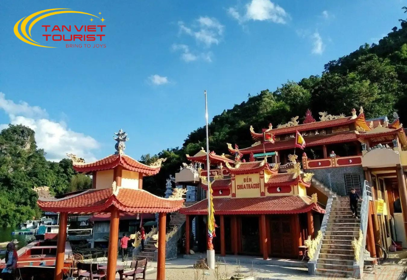 09h00: Đến cảng du lịch Thung Nai, quý khách lên tàu đi thác Bờ, làm lễ dâng hương tại Đền Chúa Thác Bờ, đền Cô, đền Cậu. Tìm hiểu nét văn hóa bản địa độc đáo với tín ngưỡng thờ Mẫu. Tiếp tục hành trình, quý khách lên tàu đến Động Thác Bờ vào thăm quan động và dâng hương ở Chùa Thác Bờ.